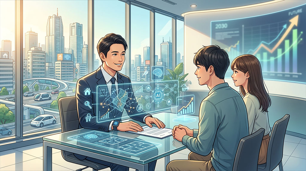 「勘と経験」に頼った査定や提案は姿を消します。AIが過去数十年分の成約データ、周辺の再開発計画、人流データ、金利動向などを瞬時に複合分析し、客観的な根拠に基づいた「売れる価格」「選ばれる物件」を提示するようになります。さらに進化した段階では、AIエージェントが自律的に物件情報を収集・分析し、顧客に最適なタイミングで最適な提案を自動送信するシナリオも現実的です。