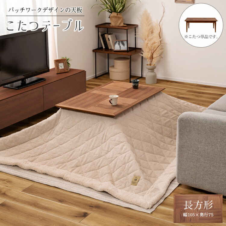 cacomの「パッチワークこたつテーブル」は、木目の向きを変えてパッチワーク状に張り合わせたおしゃれな天板が特徴のこたつテーブルです。